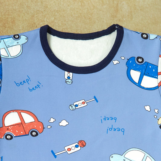 2Pcs Full Sleeves Blue Winter Suit Cars-Traffic Lights Cute Print