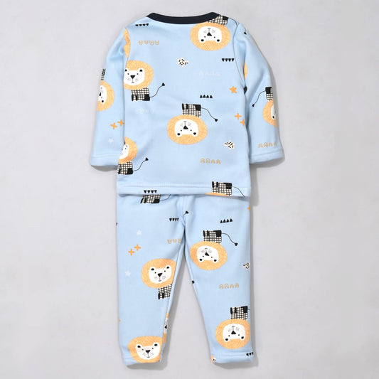 2Pcs Full Sleeves Light Blue Winter Suit Cute Lion Print