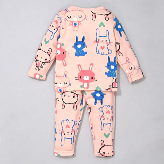 Sale2Pcs Full Sleeves Pink Winter Suit Bunny Kitties - Cute animals Print
