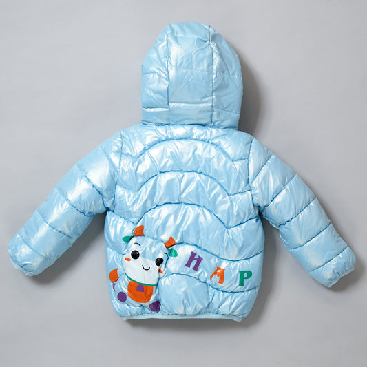 Sky Blue Glossy Cow Print Premium Full-Sleeve Puffer Jacket