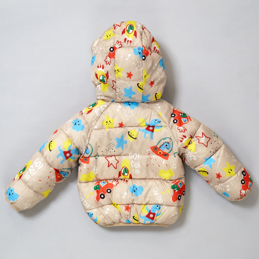 Beige Space Dinosaurs Print Premium Full-Sleeve Puffer Jacket