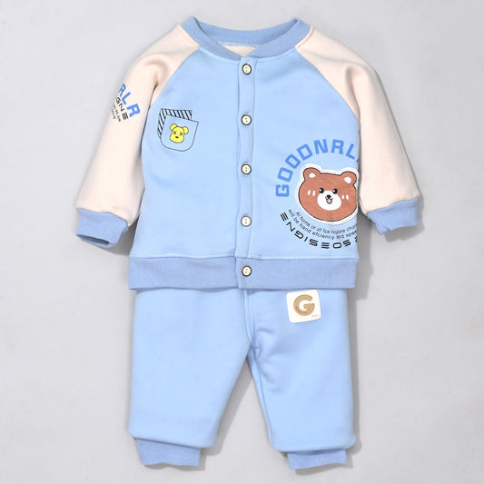 2pcs Baby Boy/Girl Cute Bear Pattern Fleece Light Blue Buttoned up Shirt and Joggers Set