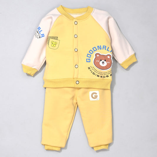 2pcs Baby Boy/Girl Cute Bear Pattern Fleece Bright Yellow Buttoned up Shirt and Joggers Set
