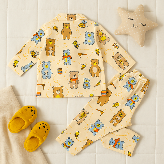 2Pcs Light Brown Printed Full Sleeves Shirt & Lower Co-Ord Set NightSuit