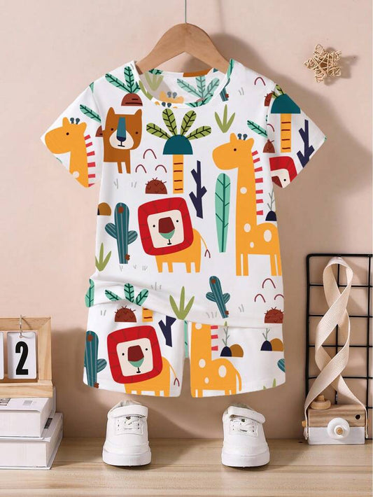2pcs Baby Boy Cartoon Safari Print Short-sleeve T-shirt and Shorts Set
