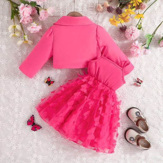 Toddler Girls Casual A-line Dress Long Sleeve Coat, & Lapel Tulle Patchwork Dress with tank top